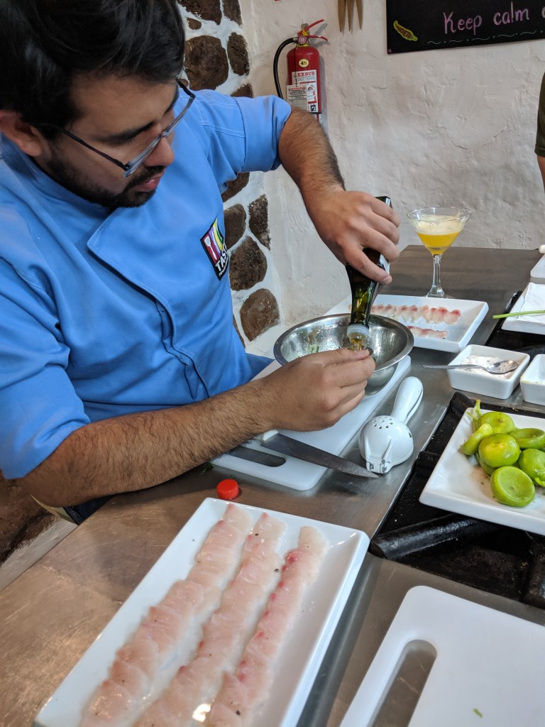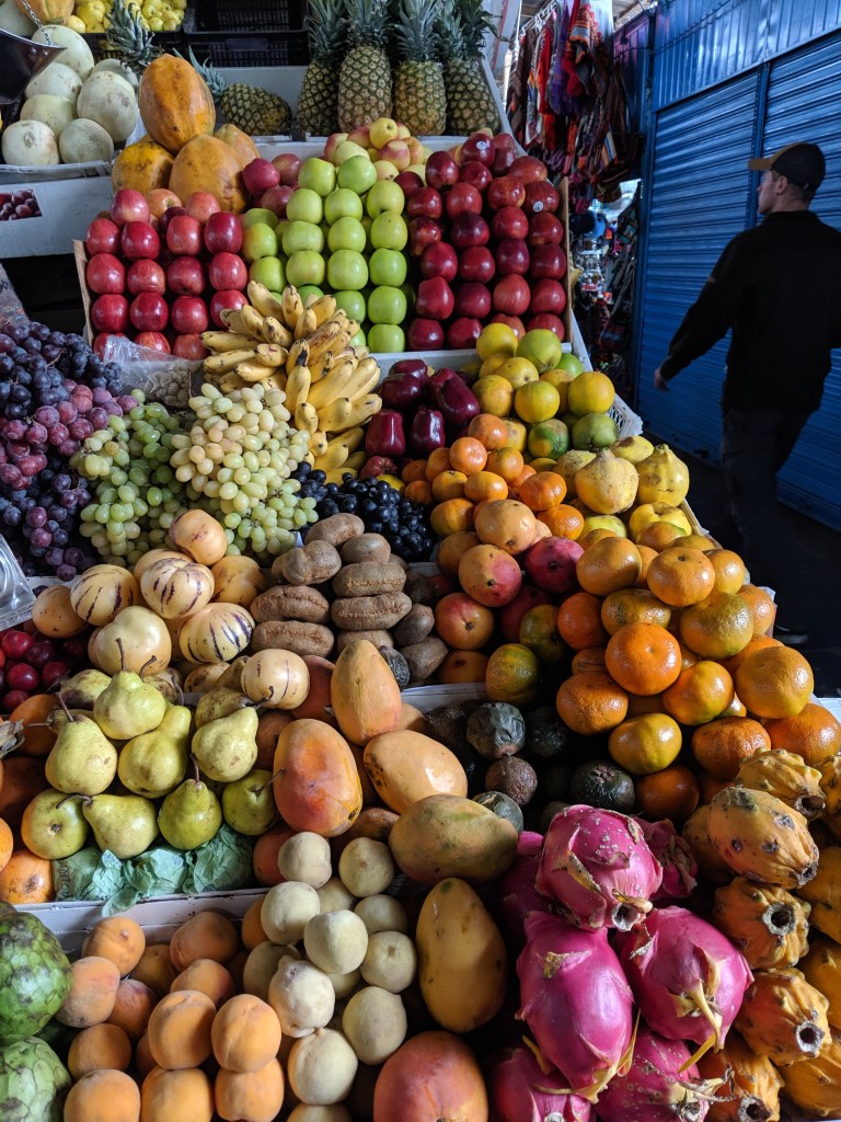 After the free walking tour, we went back to our apartment to get ready for our Airbnb Experience, cooking class. The experience was amazing and started in San Pedro where we were introduced to a vast variety of local and ancient products. Michael and I were the only ones on the tour, which was great. After picking out some fruits for dinner we went back to the cooking studio located close to the market and made a wonderful meal including: