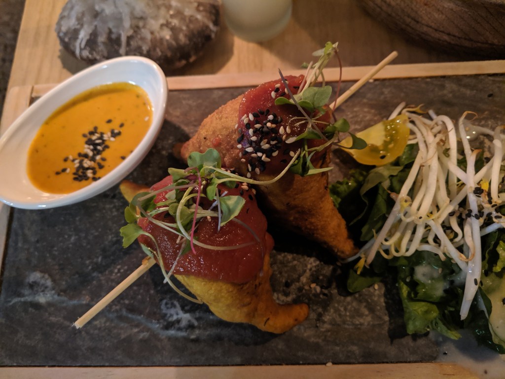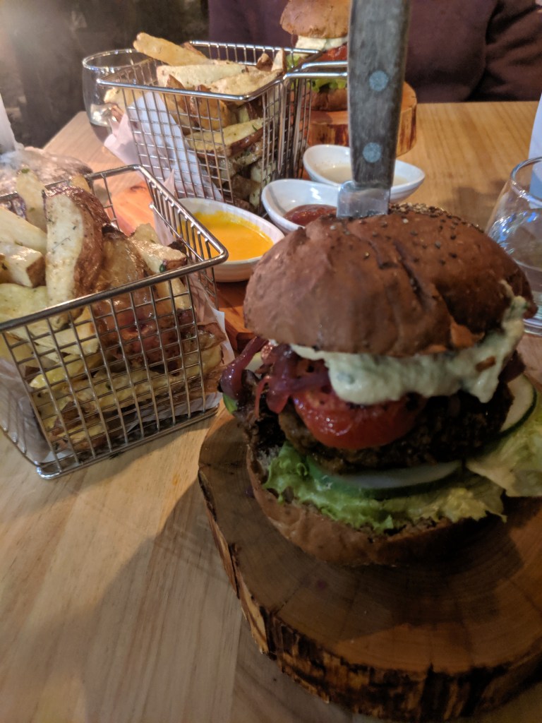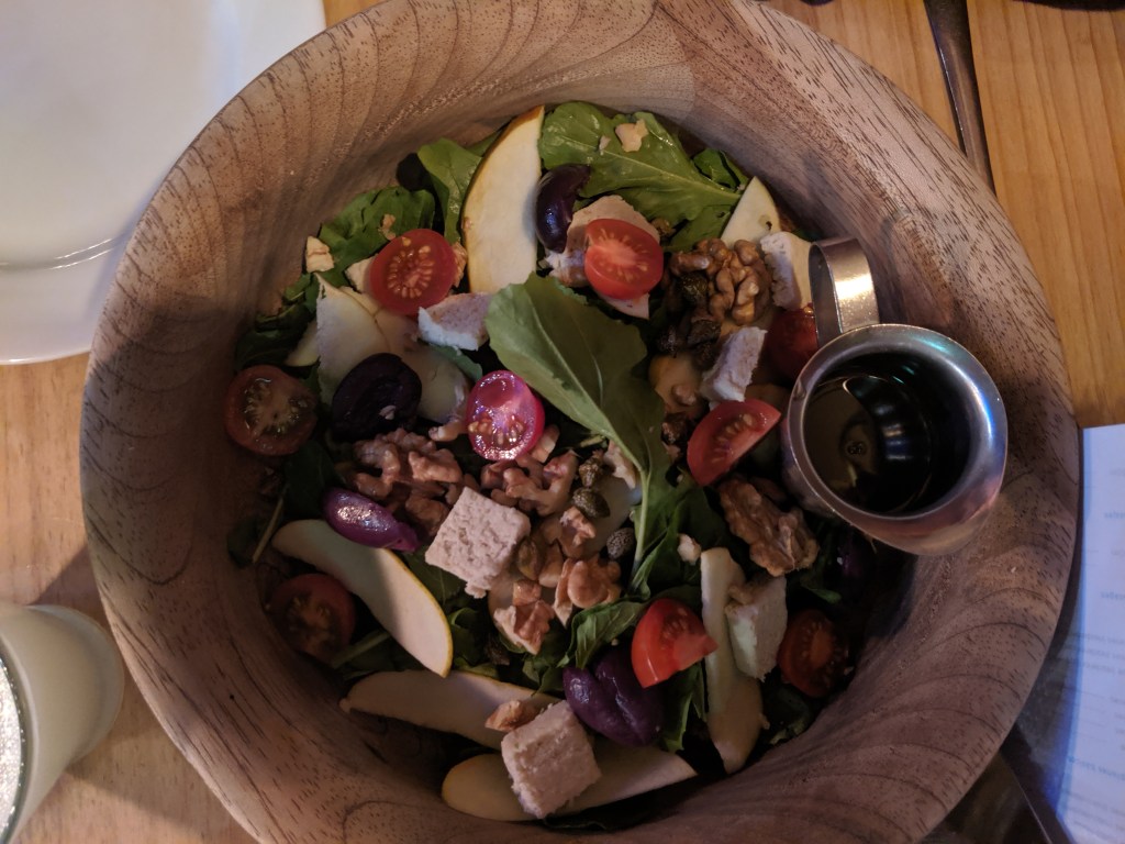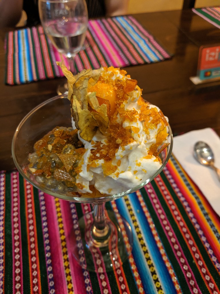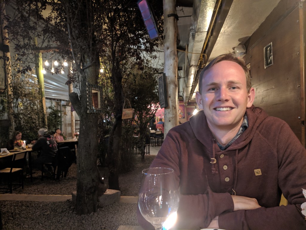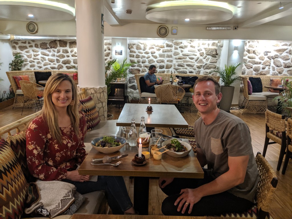 When we got back we went to dinner at Green Point which is a vegan restaurant that I highly recommend trying even if you aren’t vegan. We both ordered pisco sours (passionfruit and raspberry) and split a salad, samosas and the vegan burger which all were delicious. The atmosphere is amazing and it feels like you are outside in a forest while you are eating. I highly recommend trying this place.