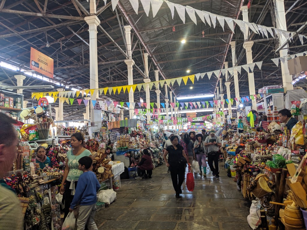 After hiking back down, we went to the San Pedro Market to do some souvenir shopping. Shopping in Cusco was very inexpensive so we bought coffee, chocolate and some pottery to bring home.