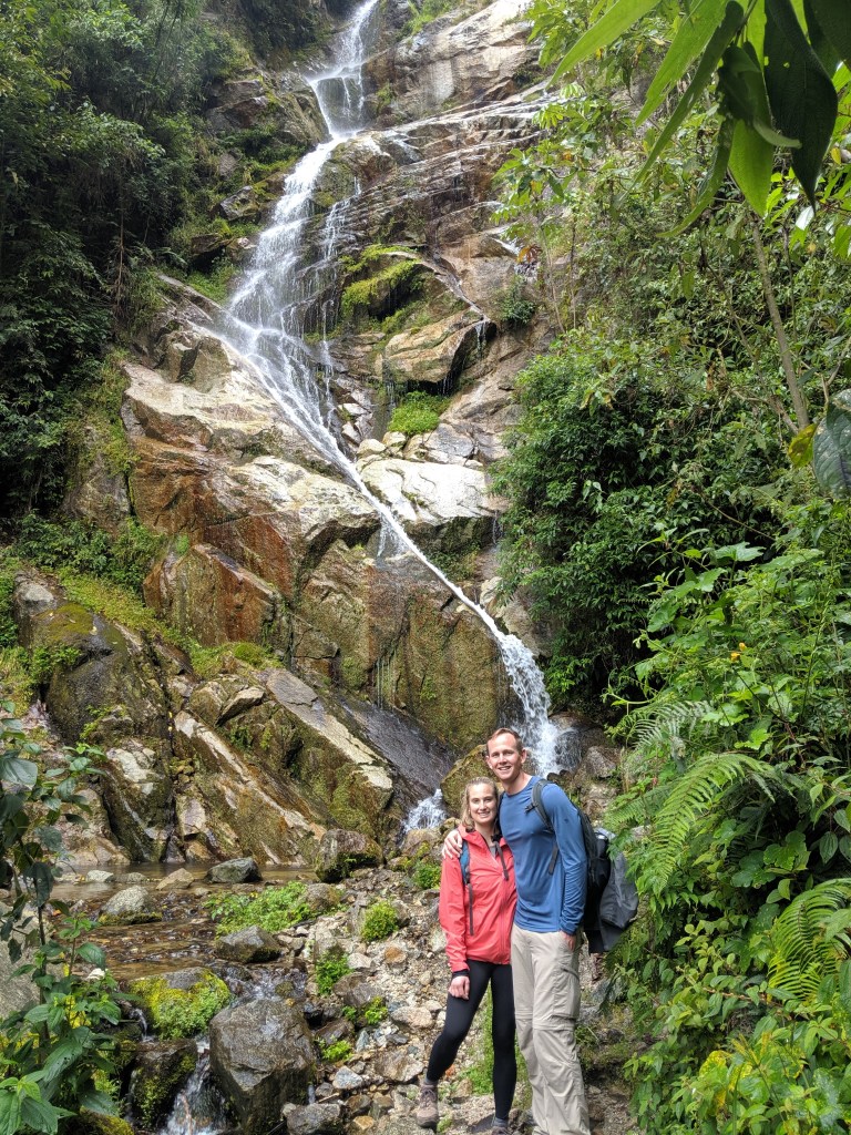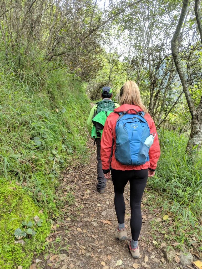 The train stopped in the middle of the forest and we were told this was where the hike started, so we got out. Right after getting off the train we met up with our tour guide and crossed over a rope bridge over a raging river to start the hike. Our tour guide’s name was Angel and he was great! Michael and I were the only ones on the hike and he kept calling us super hikers because we wanted to keep moving.