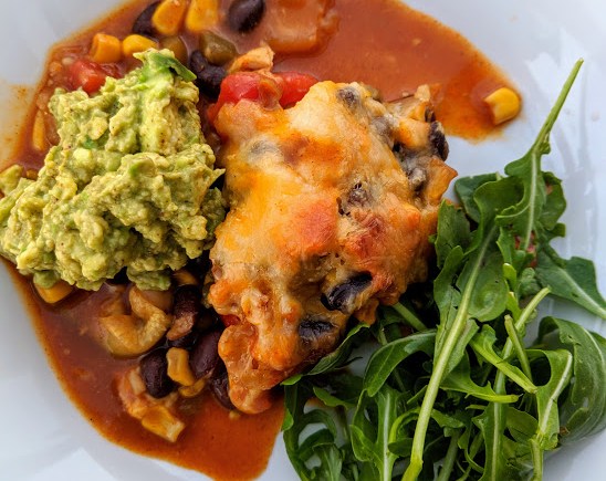 Chicken Enchilada Casserole with Zucchini (Instead of tortillas)