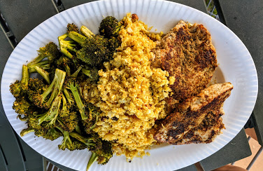 Baked Chicken Breast, Curried Cauliflower Rice and Roasted Broccoli