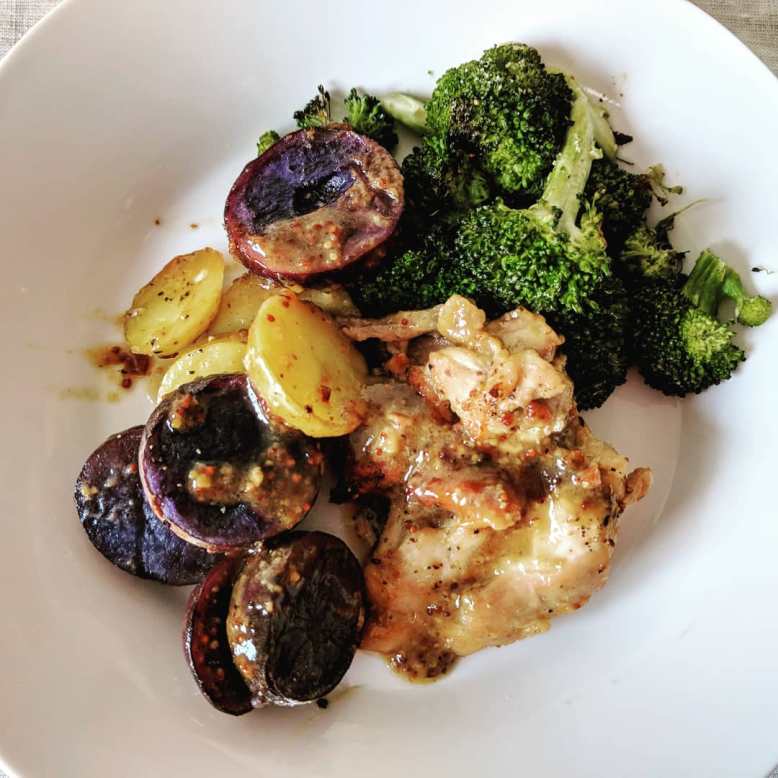 Honey Mustard Chicken with Broccoli and Potatoes, recipe from cafedelites.com