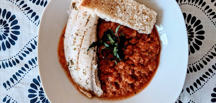 - 2 slices of white bread, cubed. I just used the bread I was going to serve with the Gazpacho