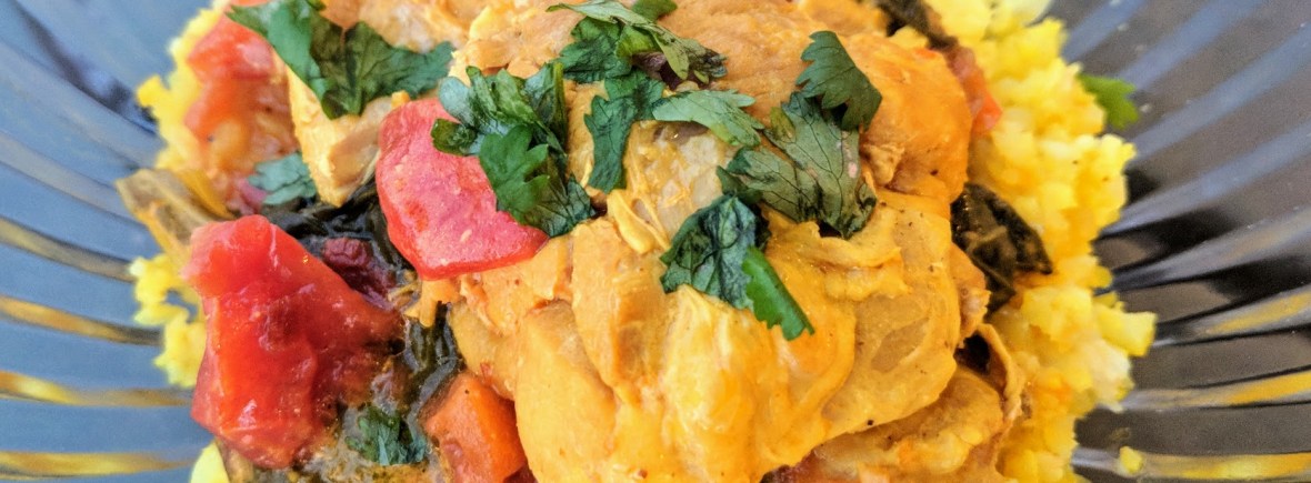 Instant Pot Curry Chicken Thighs with Turmeric Cauliflower Rice