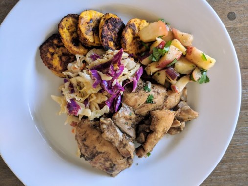 IMG_20180715_184716 Previous Published July 18, 2018 at 987 × 740 in Jerk Chicken (Instant Pot), Baked Plantains, Coleslaw, and Peach Salsa Like Loading...