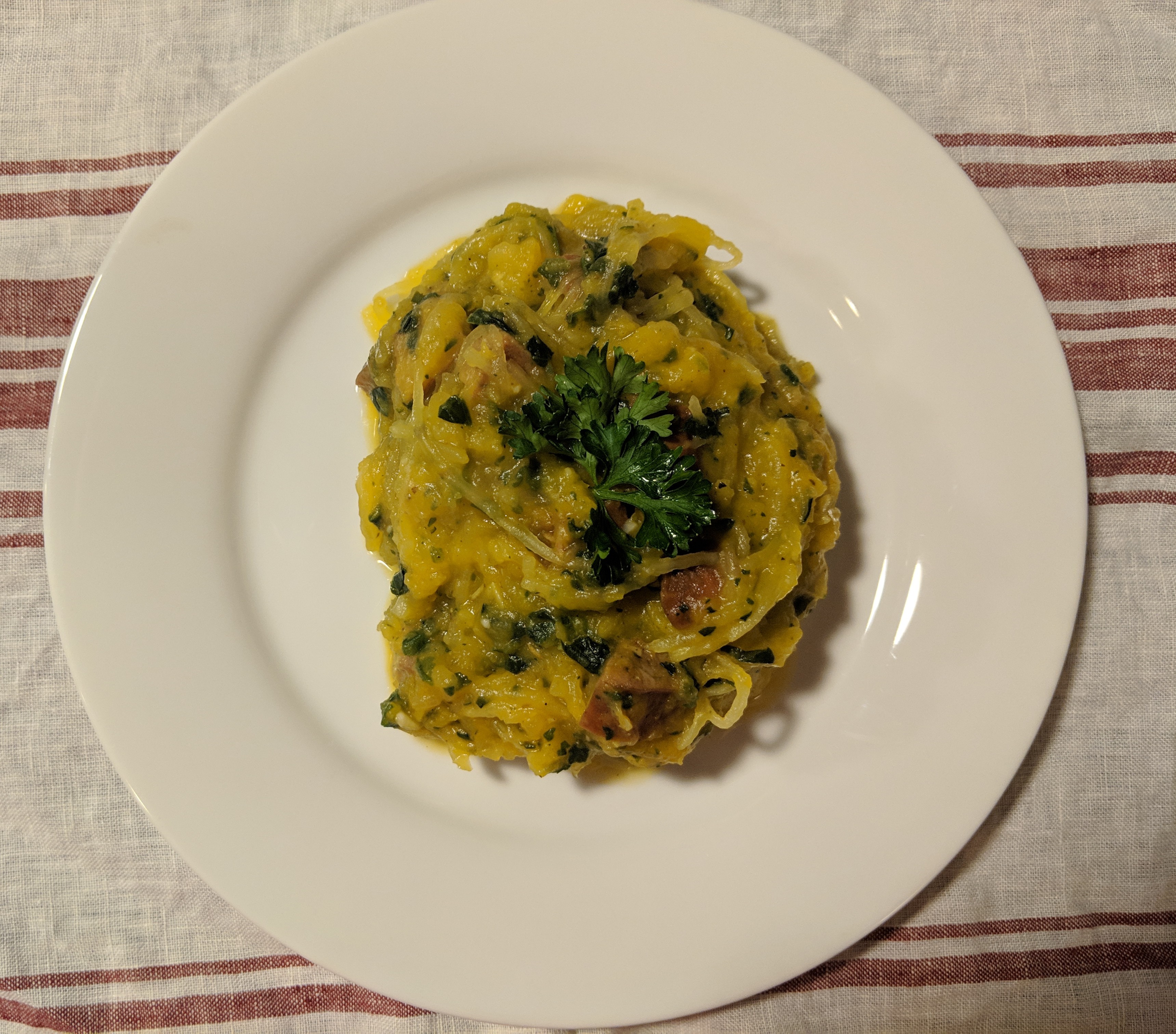 IMG_20181118_183320 Previous Published November 21, 2018 at 3439 × 3024 in Spaghetti Squash with Chicken Sausage and Spinach Like Loading...