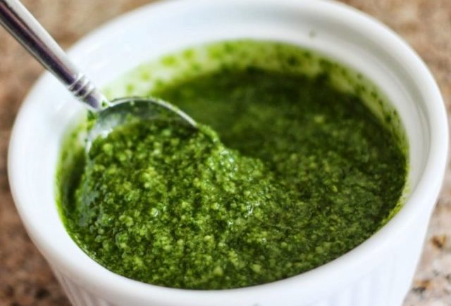 - Add salt and pepper, pulse a few times. Serve with zoodles, pasta or chicken. The pesto can be kept fresh in the fridge for 2 to 3 days.